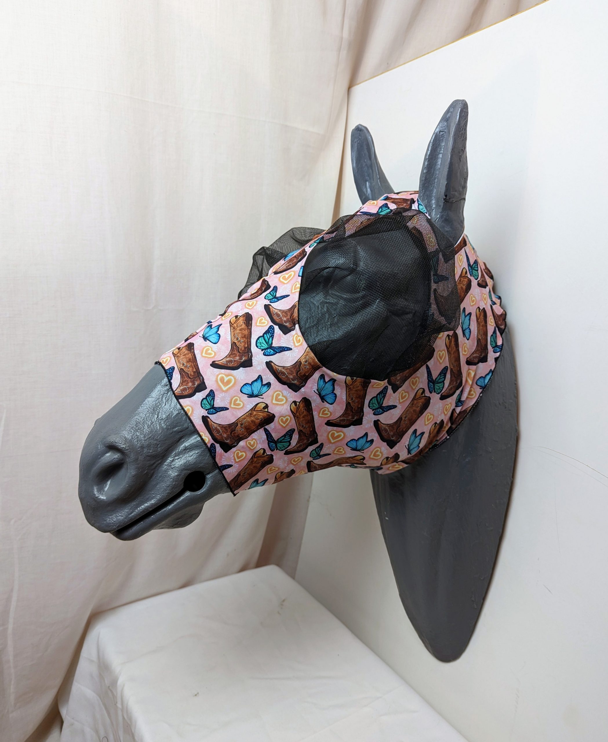 Quality lycra bug-eye fly veil. Comfortable for horse to wear, no velcro or straps.