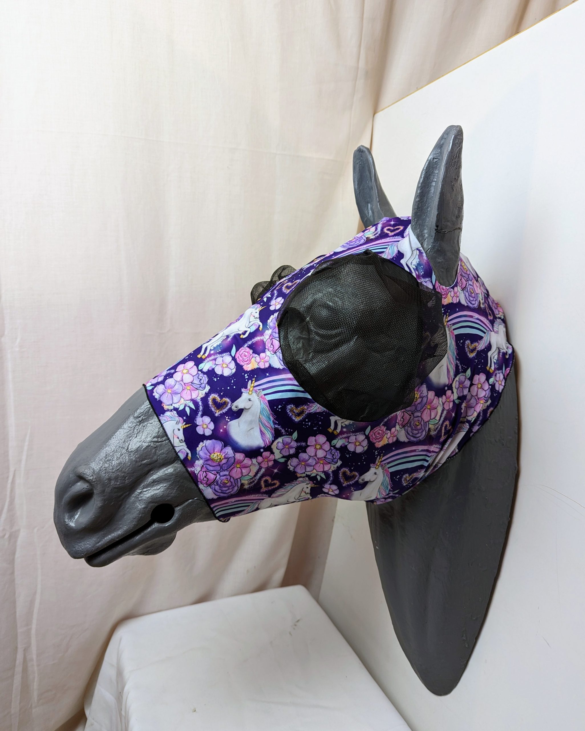 Quality lycra bug-eye fly veil. Comfortable for horse to wear, no velcro or straps.